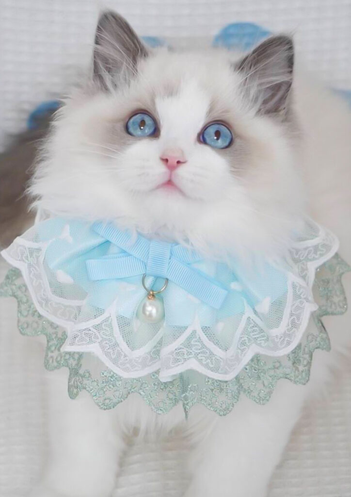 実はエトワールくん、海外からの外産血統(インポート)で、いわゆる「爆毛遺伝子🧬」を持っています。 現在1歳で体重は4.5kg。ラグドールは3〜4年かけて大人になるので、これからもっとゴージャスな毛並みと立派な体格になっていくのが楽しみです✈️